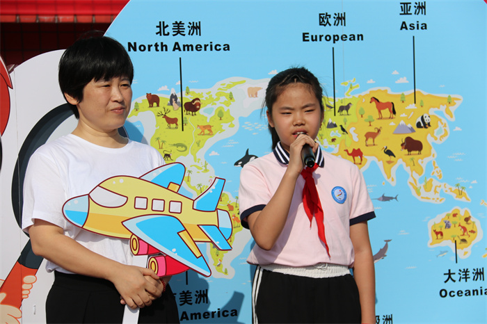 在开幕式上,上一届四节的小明星受邀上台分享了自己的感受。英语节小明星陈茜同学发言,她在英语节的配音活动中收获成长,也期待全体师生能享受英语,收获喜悦。唐蒙丹老师也喊响了英语节的口号:“It’s a small world!”此次英语节结合跨文化的理解和全球视野展开,力求学生能在活动中感受到与自然、他人及社会的融合。