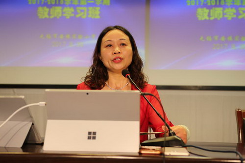 黄芳副校长从教学科研条线谈了本学期起在“教材”“课程”两方面的变化,她强调教师要担负起指导阅读、推荐优秀读物等职责,积极参与阅读的校本教研,推动阅读工程顺利开展,又要示范引导阅读,以自身良好的阅读习惯影响学生。她又通过自己的故事,告诉大家付出总会有回报,只是时间的早晚,不轻易放弃一个学生。