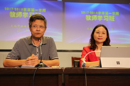 学习班上,学校领导对新学期工作进行了安排部署。首先由倪凯颜校长宣布了新学年学校的人事变动,介绍了学校中层领导分工安排。接着,倪校长从“要有‘我是和谐大家庭中一员’的意识”“加强办公室文化建设,提升师德水平”“加强学科组、教研组建设,提升教师协作水平”这三方面向大家提出了新学期的工作要求。