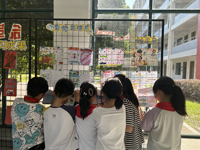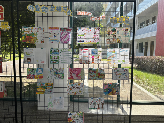 学生们通过上网、查阅书籍等方式,精心设计、书写、绘图,制作出了一张张色彩丰富、图文并茂、书写美观的英语季节卡片。瞧,孩子们用一张张图片,一行行语句展示了自己最喜欢的季节。春天的风筝、夏天的冰淇淋、秋天的落日以及冬天的白雪……四年级的孩子们用一双双善于发现美的眼睛,以色彩为墨,绘万千美景。