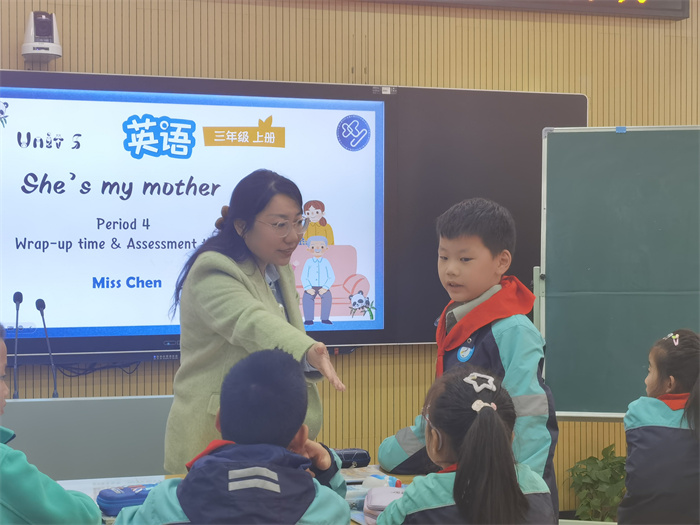 魏老师从Finger family出发,带着孩子们复习巩固了Liu Tao’ family和Su Hai’s family,从而回归My family,最后引出Alphabet family。魏老师精心设计了一系列师生互动的活动与游戏,让学生在愉快的氛围中学习了字母OPQ的读音、书写和发音,并回应单元的Big question。陈老师在处理Wrap-up time和Assessment time时,践行“教—学—评”一体化的教学理念,用持续的、递进的评价标准有效地引导学生复习、学习、回顾和评价。她利用日常生活中的元素,引导学生从熟悉的环境出发,把师生的照片作为教学资源,与学生进行深入的话题讨论,凸显主题意义。