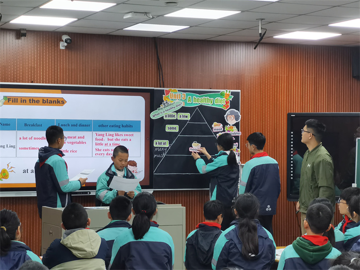 首先,殷贺凡老师执教了译林版六年级下册《英语》Unit 3 A healthy diet第一课时。殷老师以Mike和Yang Ling的饮食为教学基础,以“饮食金字塔”为抓手,围绕Big question“What is a healthy diet?”,开展丰富的学习活动,引导学生树立正确的饮食习惯。