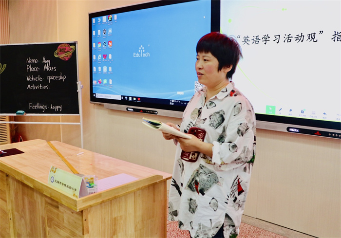 课例展示后,先由王老师结合今日教学实践谈了自己的设计思路,参与磨课和指导的两位老师也充分肯定了王老师的设计和课堂呈现,以“Holiday fun”串联整节课,主线清晰。每个操作环节都给予了支架,学生在上课过程中充分理解并大胆表达,师生配合度高。与此同时,师生、生生交流让学生感悟到美好其实就在我们身边的假期乐趣。