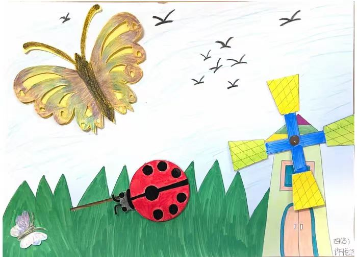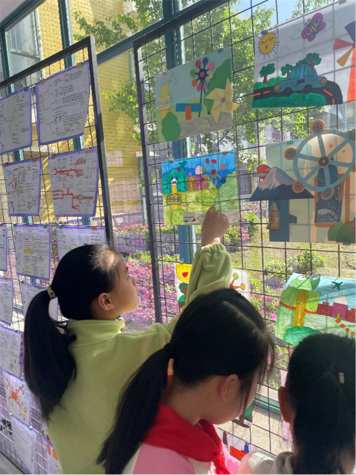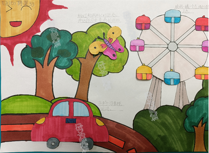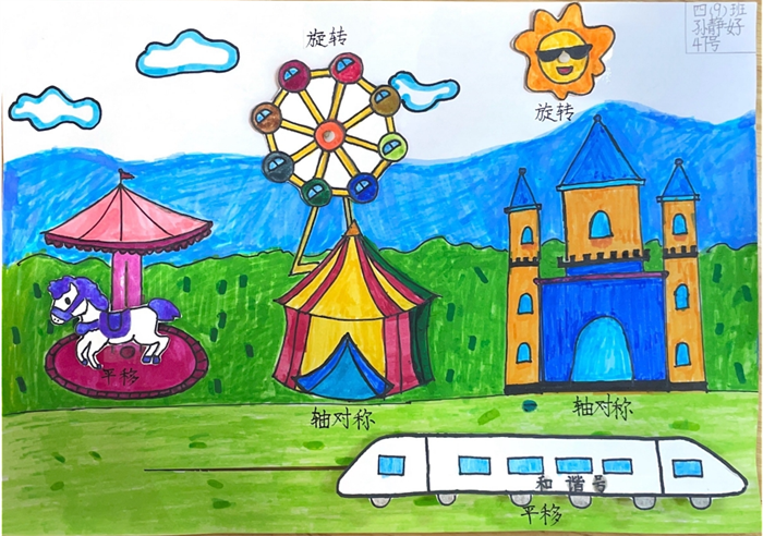 活动中,同学们设计出了不同主题的作品:有乐园主题、星空主题、春天主题等;形式丰富多样,从静态到动态,突出立体感:他们尝试设计了可以运动的小车,旋转的风车,轴对称的蝴蝶图案,或者具有轴对称特点的建筑物。在设计活动中,通过平移和旋转,探索图形的变化与规律;通过轴对称,感受图形的平衡与和谐。这样的活动,不仅能够加深孩子对数学知识的理解,还能培养他们的空间观念和几何直观。