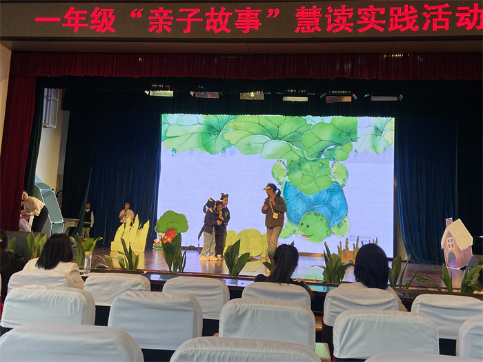 为激发学生阅读兴趣,提升语文素养,4月29日,安镇实验小学一年级语文组举行了妙趣横生的童话故事表演,将学生“慧读”实践的阅读成果以亲子表演的形式呈现于舞台上。
