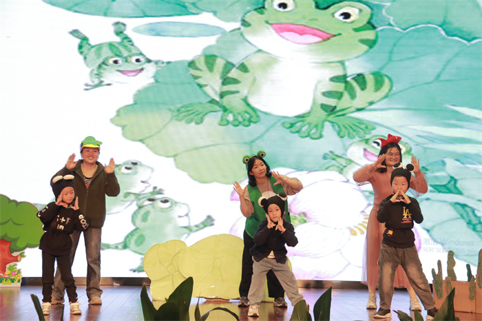 表演过程中,各班家长和小演员们用精彩的表演诠释了自己对童话故事的理解。团结友爱的三只小猪、拔萝卜的好朋友们、奸诈狡猾的狐狸、找回表情的小木偶、愚昧无知的寻剑人、骄傲自满的小兔子、终于觅得妈妈的小蝌蚪……惟妙惟肖的表演让大家啧啧称赞,台下观众的掌声不绝于耳。