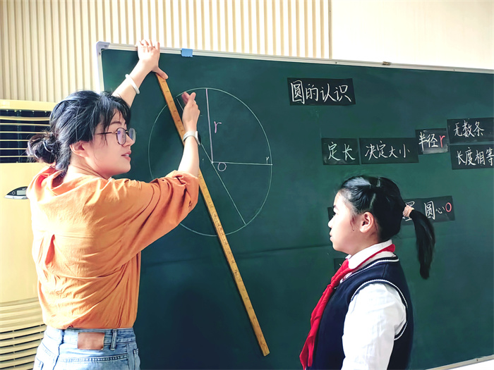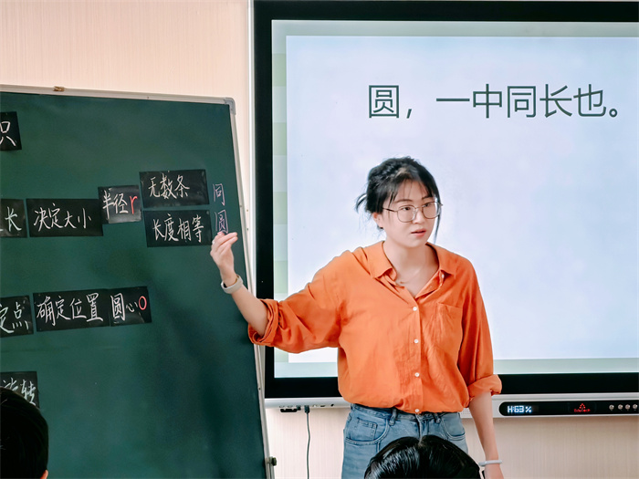 无锡市育英实验小学刘铭老师执教《圆的认识》,刘老师借助学生感兴趣的《西游记》中的两个片段,让学生初步感受到:圆上任意一点到中心的距离处处相等。接着,学生在画圆、画半径以及测量的过程中,逐步完善认知:同一个圆中,圆上任意一点到圆心的距离处处相等,并进一步认识了圆的要素。整节课,学生在丰富的操作中体验感悟,理解圆的本质。