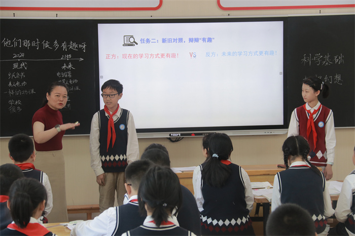 无锡市隆亭实验小学陆晓凤老师执教六年级下册《他们那时候多么有趣啊》。陆老师立足单元主题和语文要素,通过“找找不同”“辩辨有趣”“写写科幻小说”的学习任务,引导学生关注文中奇特有趣的想象,感知科幻小说的基本特点,并能运用文中语句和联系生活证明自己的观点,发展学生的思维力和创造力。