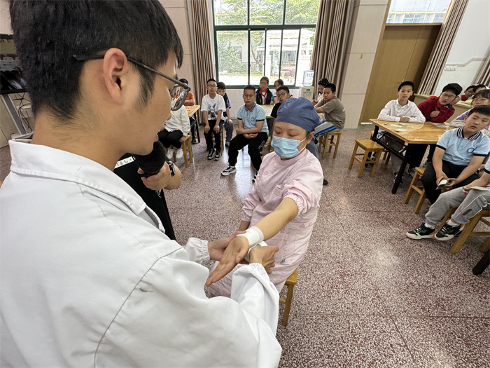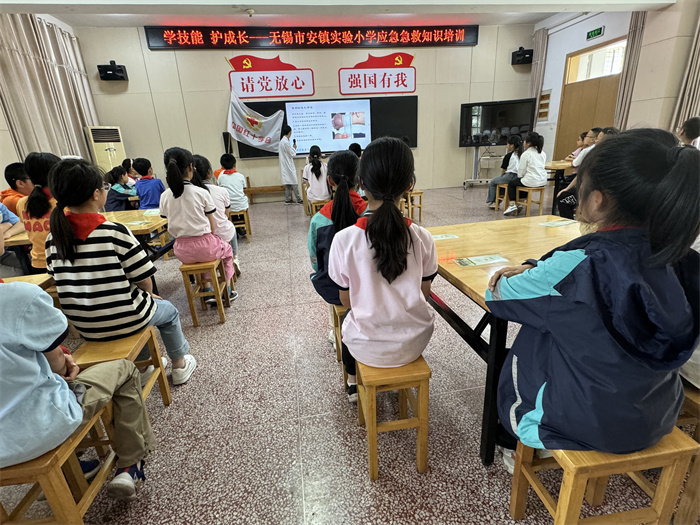 为打造安全健康校园,提高学生安全防护意识和应急处理能力,5月13日,安镇社区卫生服务中心涂明聪医师为我校五年级学生开展“心肺复苏(AED)”和“包扎四项”使用急救技能培训。