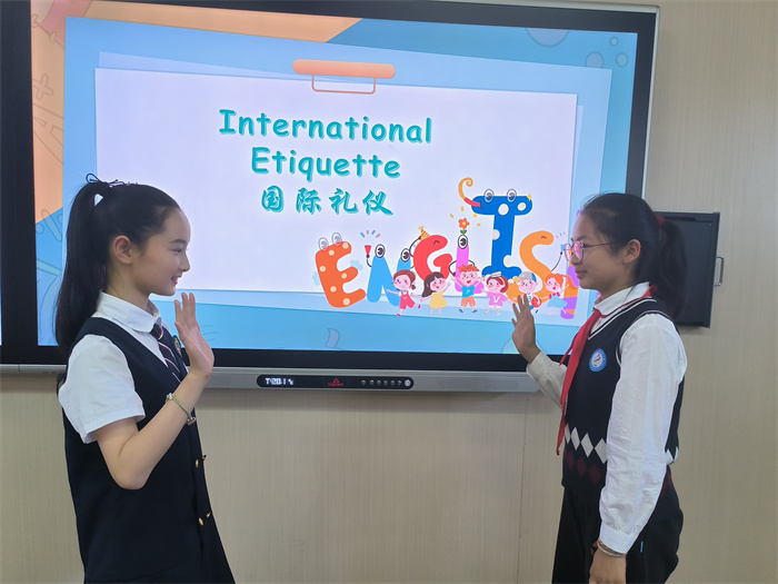 此次培训由张沁奕老师主讲,围绕乘车礼仪、问候礼仪、上课礼仪、参观礼仪等几方面,生动细致地讲解分析各种礼仪并进行互动体验,让学生们在实践中学习。学生们还观看了来自不同国家的礼仪视频,模拟了多种国际交往场景,如问候、接待等,以此来加深对国际礼仪的理解和应用。学生们在培训结束后纷纷表示,这不仅是一次礼仪知识的学习,更是一次文化理解和尊重的体验。