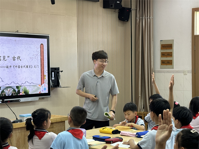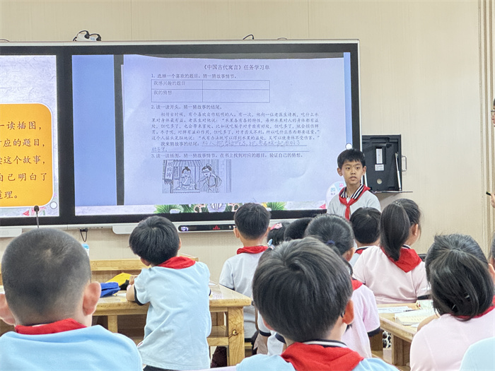 米朋超老师执教了《中国古代寓言》导读课。教学中,米老师围绕“带着问题去阅读”激发孩子阅读中国古代寓言故事的兴趣,教给孩子阅读中国古代寓言故事的方法。学生精神饱满,发言积极,展现了安小智慧生长的课堂样态。