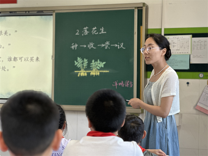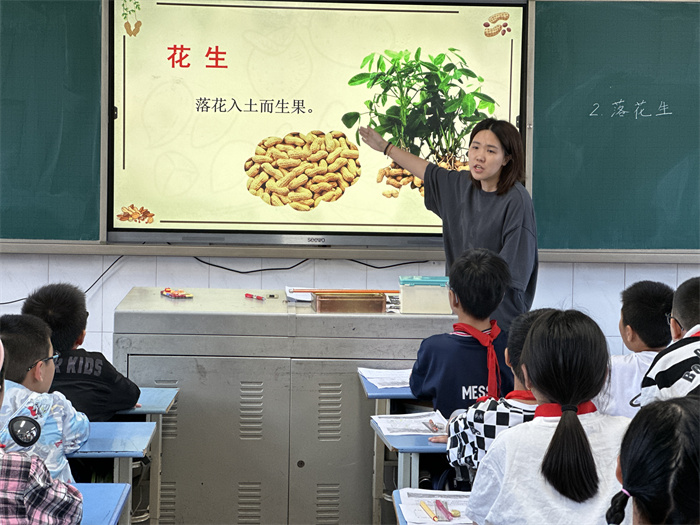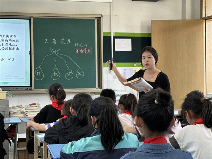 语文高学段:五位参赛老师执教五年级下册《落花生》一课。老师们带领学生梳理出“种花生”“收花生”“吃花生”“议花生”这一过程。引导学生关注文中人物对落花生的评价,重点品读父亲的话,体会其带来的深远影响,从而更加深刻地领悟到“做一个具有落花生品格的人”的深刻含义。同时,在品读中发现作者借物喻人、详略得当等写作方法,以及语言朴实的表达特点。