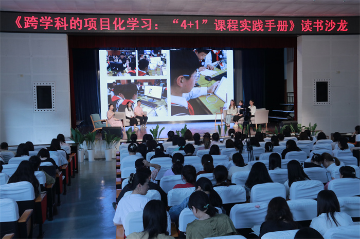 活动伊始,科学组、信息科技组结合本学期共读书目《跨学科的项目化学习:“4+1”课程实践手册》一书进行读书分享。在邵亚楠老师的主持下,李梦媛老师、巢雅婷老师、杨亘宇老师、王宇洁老师和吕佳媛老师围绕“为什么做跨学科的项目化学习”“什么是跨学科的项目化学习”“如何进行跨学科项目化学习”三个话题展开讨论。