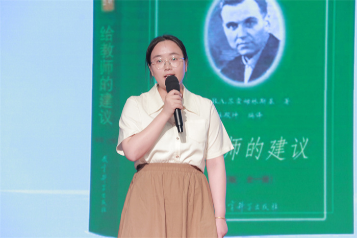 教师既是读书的示范者,又是读书的引领者。随后,青年教师宋香作《做领读者——成为有底气的儿童阅读教师》主题演讲。宋老师结合自身阅读经历,呼吁老师们多读书,读好书,让书籍丰盈自我的精神世界,用自身去积极引领,帮助儿童找到能在他们心灵里留下不可磨灭痕迹的书,用阅读开启爱与智慧。