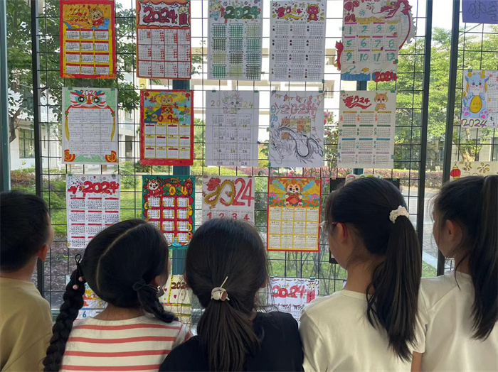 同学们积极参与,通过剪一剪、贴一贴、画一画,制作出了一幅幅设计精美、创意灵动的优秀作品。有用动漫人物装饰的,也有用生肖“龙”来做小插画的,还有用镂空雕花装饰的,同学们用自己的巧手绘制了一张张精彩纷呈、独具特色的年历。