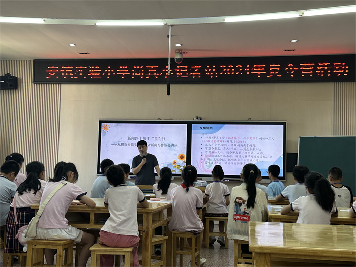 为进一步提升小记者站建设水平,提高小记者的业务素养,7月4日,无锡市安镇实验小学尚真小记者站邀请江苏省《关心下一代周报》无锡地区负责人郭瑞老师来校进行了小记者新闻写作业务讲座。