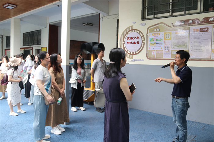 校长李淑英带领安小教师走进扬州百年老校东关小学参观学习,扬州市东关教育集团党委书记、总校长唐开权一路引领、生动讲述。唐书记从“文”和“化”的意蕴切入,分享了学校文化建设与内涵建设发展历程、“至善”课程的构建与实施,教师们徜徉在充满“善”文化的校园环境中,深切体会到了东关小学“善行一生”办学理念的核心要义。东关小学的李洪怡老师作《想说爱你们不容易——谈谈班主任的那些事》的主题讲座。李老师用耐心、慧心、善心生动展示了“至善”文化中行善之源、大善之化、积善之举的具象化实践。
