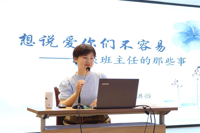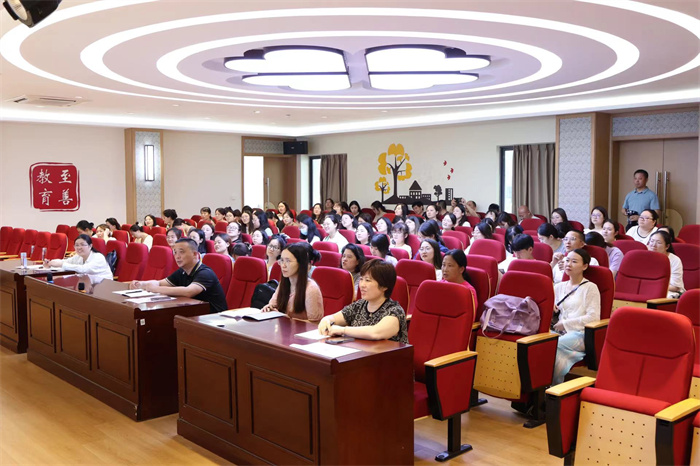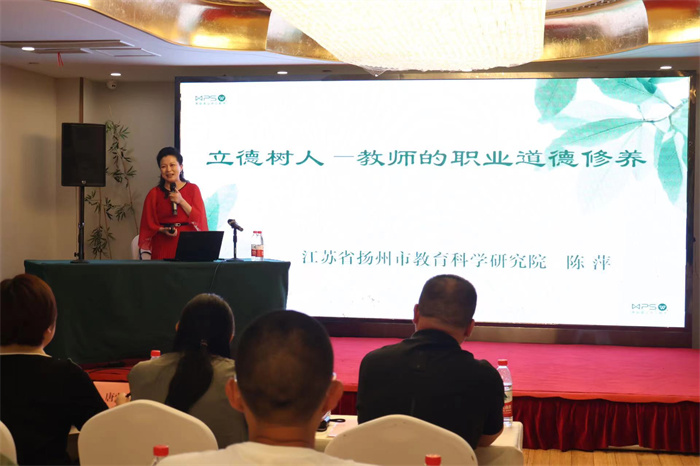 江苏省扬州市教育科学研究院副院长、扬州大学硕导陈萍教授开展题为《立德树人——教师的职业道德修养》的讲座。陈教授不乏幽默、充满真情地讲述了一个又一个动人的教育故事,感染着在场的每一位老师,她围绕“角色定位、以德立身、以德育人、以德育德、以德立学”五个方面,全面深刻地阐述了立德树人的内涵与意义,在座教师进一步认识到努力提高自身职业道德修养的重要性以及立德树人的具体行动路径。