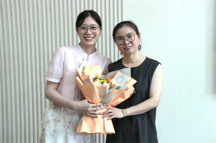 优秀师徒代表钱美芳和张沁奕讲述师徒间的故事。张老师细数师傅对她的积极影响,感恩师傅的榜样引领作用。钱老师肯定徒弟谦虚好学的精神,期许徒弟精进业务、追求更高的目标。师徒二人教学相长,亦师亦友,共同进步。
