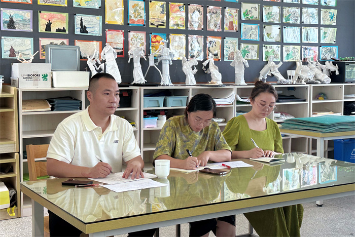 调研组成员与执教老师、学科团队进行面对面的评课研讨,精准把脉课堂教学,提出建设性的学科实践建议。同时查看了学生的作业作品、作业记载簿,教师们的听课笔记、备课本、教研活动记载本,了解了学校的青蓝工程和教研活动开展情况,近距离、全方位地了解学校的教学生态。