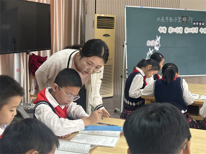 10月10日上午,华仪老师执教三年级课例《在牛肚子里旅行》。华老师围绕单元要素设计“参加童话故事会”的情境,根据“讲好故事”的核心任务,在“学词读文,整体感知”“借助画图,介绍旅行”“关注对话,体会心情”“感受友情,讲好故事”这四个学习活动中有梯度地达成本课学习目标。
