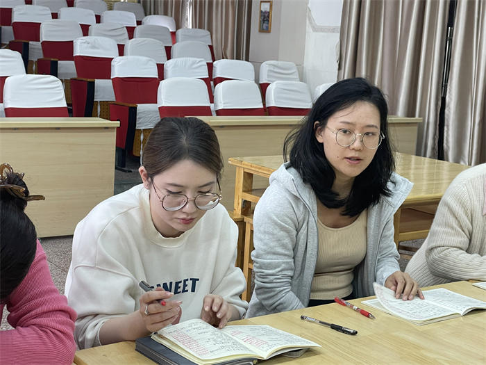 下午,两位执教老师先对自己的课堂进行简单的总结,老师们围绕研讨主题“情境创设与言语实践”进行评课议课。教导处主任孙洁老师进行点评。她在肯定青年老师基本功扎实的同时,也提出要在课堂中设计多样的言语实践的活动,老师们要利用已有的资源扎扎实实上好每一节课。