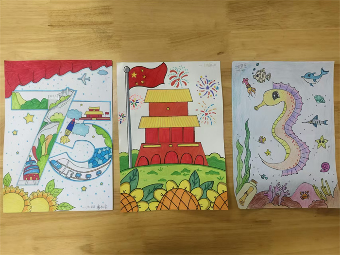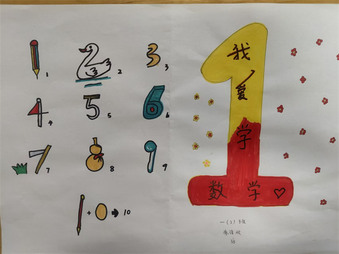 一年级的小朋友们用巧笔画出了自己理解的趣味数字。直直的旗杆像数字1,弯弯的海马像数字3,7和5画在一起正好是伟大祖国七十五周年华诞。在小朋友们的眼睛里,数字随处可见,数字各种变形。在他们的画笔下,单调的数字变得活泼又有趣。