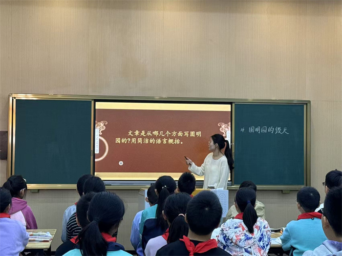 10月23日上午,吴习习老师执教四年级课例《蟋蟀的住宅》。吴老师通过“选一选,初识住宅结构”“夸一夸,说出住宅优点”两个活动展开,透过文字体会文章准确生动的表达,感悟作者连续细致的观察。10月24日下午,阮佳黎老师执教五年级课例《圆明园的毁灭》。阮老师围绕单元要素,从“寻找昔日的辉煌”“了解昨日的毁灭”“倾听今日的诉说”三个学习活动展开,引导学生结合资料体会圆明园昔日的辉煌与毁灭,深刻感受国家的兴衰荣辱。