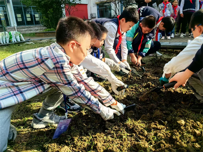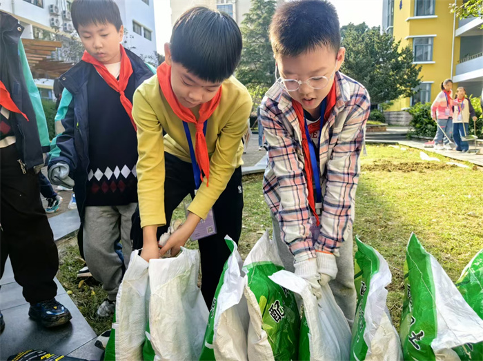 活动时,他们拿着准备好的小铁锹和小耙子,热火朝天地在试验田里锄草、翻土,再加入营养土和肥料,最后浇入适量的水,将原本试验田中板结的土壤进行了一番改造。队员们亲手实践,用实际行动为小麦的生长打下坚实的基础,为小麦种植计划的开展做好充足的准备。