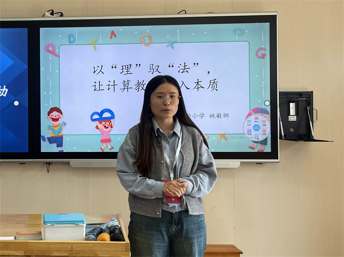 本次活动由教导处胡素娟老师主持,新秀班的老师们围绕新课程标准中的某一关键内涵,结合生动的教学案例,分享了新课标理念下各自的教学思考与实践探索。王梓钰老师结合自己执教的课,例谈如何帮助学生理解算理,掌握算法,上好计算课;周月明老师结合低年级儿童的特点,设计“小先生制”,在小组交流、全班交流中力图使学生会用数学的语言表达现实世界;姚敏娜老师结合具体课例,将自己对算理与算法的思考凝结成一篇论文,力求实现学生由算理到算法的自主建构;吴慧文老师从高年级教师的视角讲述对整本书阅读的思考,并提出可以将整本书阅读融入每周的大阅读中,以游戏化的形式提升学生整本书阅读的兴趣。四位老师注重理论与实践相融,理性与感性相辅,展现了我校新秀教师在新课标理念下的教学智慧和创新能力。