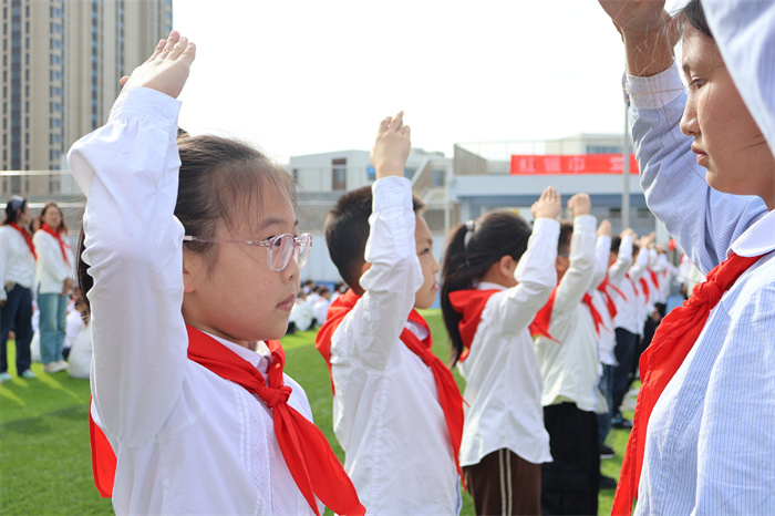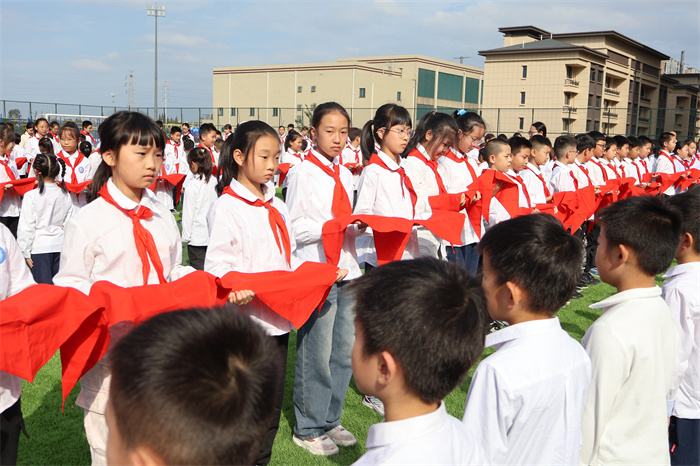 鲜艳的红领巾承载着光荣的理想,激励着少先队员们昂扬向上。老队员们排着整齐的队伍,庄重地为新队员们戴上了鲜艳的红领巾。新队员们眼神坚毅,激动的心情溢于言表,每一位孩子都为能够加入少先队组织而自豪。