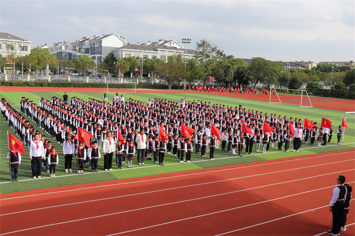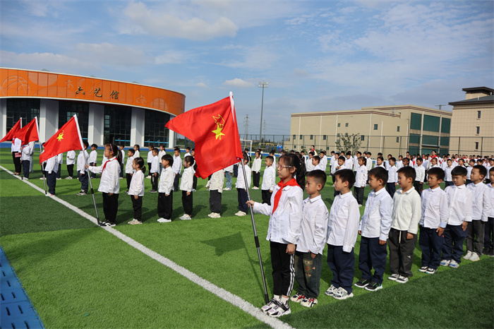 嘹亮的队歌响彻操场,预备队员们精神饱满,稚嫩的童声充满对少先队组织的热爱与向往。