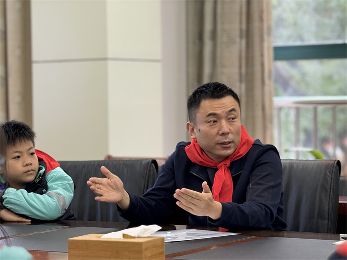 “您第一次跳伞时什么感受?”“您的军旅生涯给您的生活带来了什么好处?”“您在飞行生涯中最为难忘的是什么?”“今天您有什么话想对新时代少年说?”小记者们们主动提问,程叔叔认真解答孩子们提问,向小记者们讲述了军旅生活中的趣事、乐事、苦事、难事,最后寄语小记者们:“努力学习科学文化知识,以实际行动为祖国建功立业!”随后,程鑫叔叔为小记者们讲解了飞行常识、常见机型等,在小记者心中埋下了一颗小小的飞行种子。