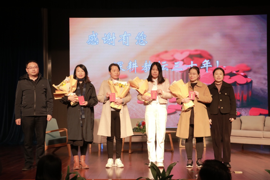 学校还为四位30年教龄的老师——安彩红老师、何永萍老师、陆建英老师、万叶新老师颁发了荣誉证书。他们勤勉做事、笃实做人的高尚品格,丰富且深刻的经验智慧将永远激励年轻教师不断进取。
