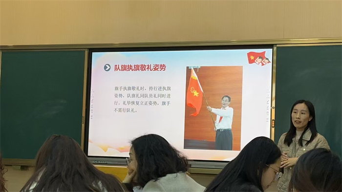 大队辅导员张婷老师、谢雨铠老师分别对两个校区的全体辅导员进行了队活动的队仪式培训。她们详细介绍了队仪式的流程和注意事项,并强调了队仪式在培养队员集体荣誉感和团队精神方面的重要作用。谢老师希望辅导员们能够认真学习和掌握队仪式的相关知识,为开展丰富多彩的队活动打下坚实的基础。