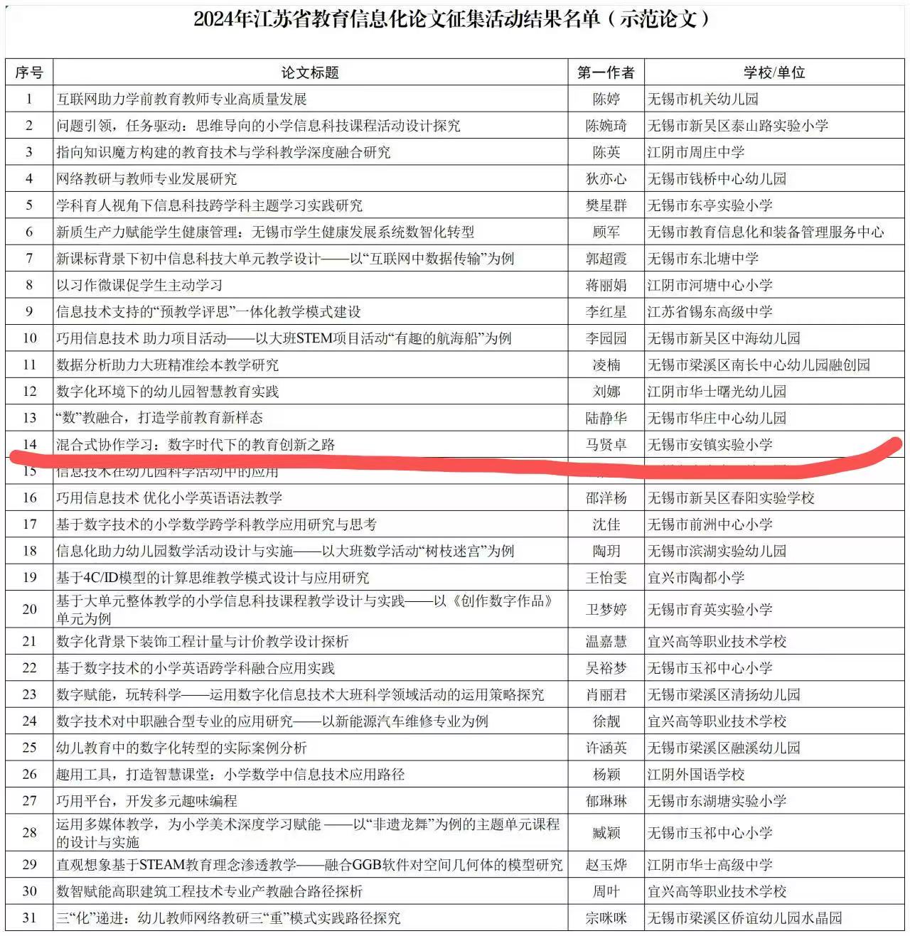 我校马贤卓老师获评江苏省教育信息化论文征集“示范论文”奖