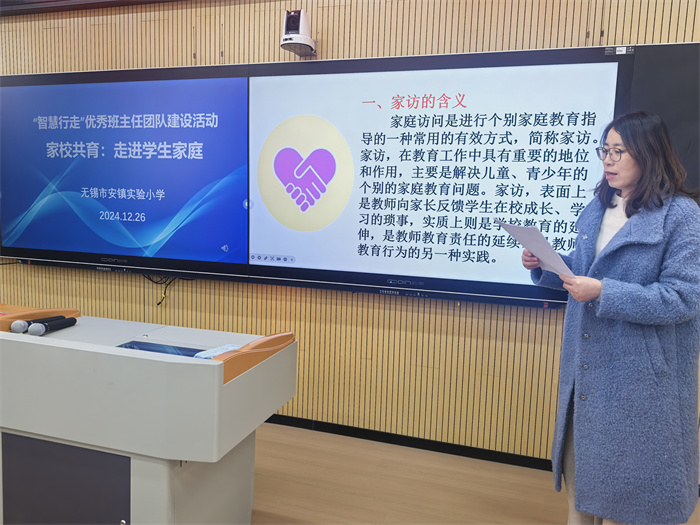 为了提升班主任家访技能,加强家校沟通与合作,推动班主任团队专业化发展以及增进师生及家校之间的理解和信任,12月26日、27日,安镇实验小学两校区举行了 “智慧行走”优秀班主任团队建设活动。本次活动围绕“家校共育:走进学生家庭”这一主题,邀请了德育骨干华震艳、蔡玉梅和邹超三位老师担任主讲人,为35周岁以下班主任带来了精彩的讲座。