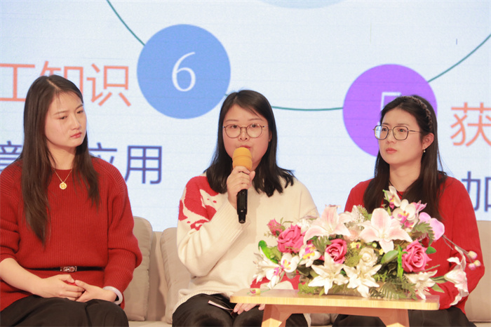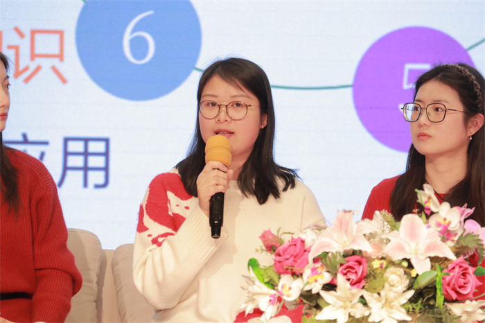 王梓钰老师结合基本功培训的经历,分享了“激活先前知识”步骤中可以通过结构化的策略唤起学习者已有的认知,促进学生形成结构化思维;在“获取新知识”时,运用教具、多媒体课件等可视化教学工具,加强直观形式的呈现,促进理解;在真实情境中解决问题来促进知识的“深度加工”。