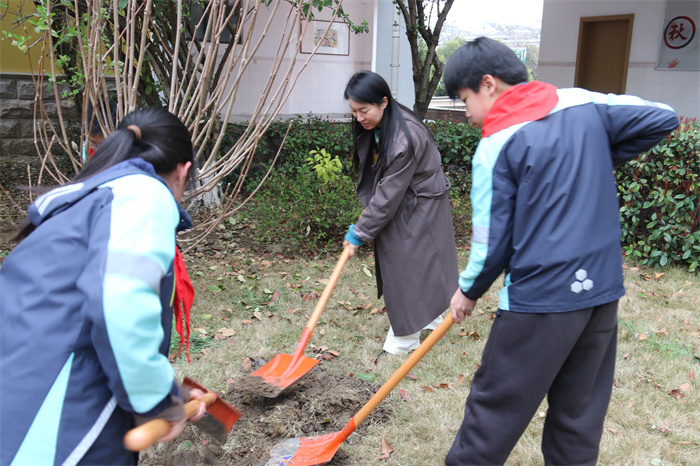本部各班学生代表、吴云霞校长、马贤卓副校长以及德育主任沈亚娟一起来到春园。吴校长和学生代表们一起合力栽种玉兰树,扶稳树苗、夯实土壤、挂好树牌、细心浇灌。承载梦想与希望的玉兰树在安小两部的沃土中深深扎根,也深深根植于每个安小学子的心中。两部同学们浑厚雄壮地宣誓:“心怀感恩,追逐梦想。争做安小最美毕业生!”更彰显了他们对未来的信心与勇气。