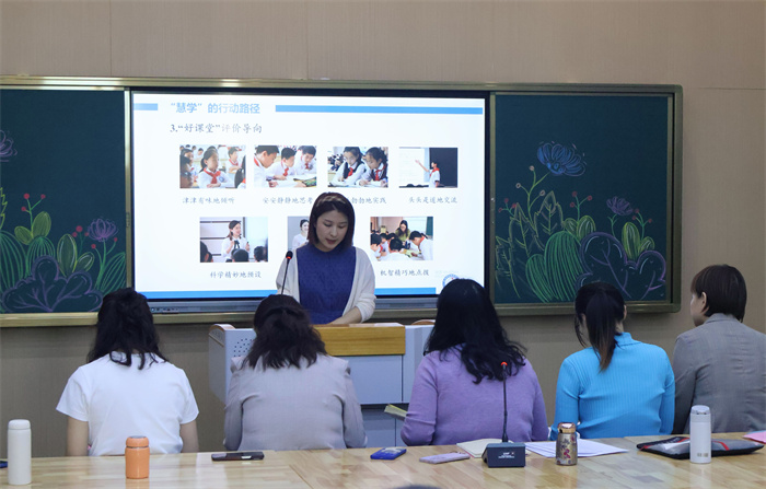 安镇实小语文分管教导华怡静以《积极实践:探寻语文慧学之路》为主题,汇报学科组建设情况。她详细介绍了安小语文学科组的课堂实践着力方向:创设学习场域激发学习欲,设计前置学习促主动探索,开展实践活动助掌握方法,鼓励成果发布检验学习效果。同时,借“种子课”引领、项目突破及“好课堂”评价,提升教师教学水平。华老师提出,尽管水岸校区在积极践行“慧学”实践活动,但目前依然面临不少现实问题,如学生基础弱、习惯差,教师专业发展滞后等难题,盼专家指导,以优化“慧学” 路径,提升语文教学质量。