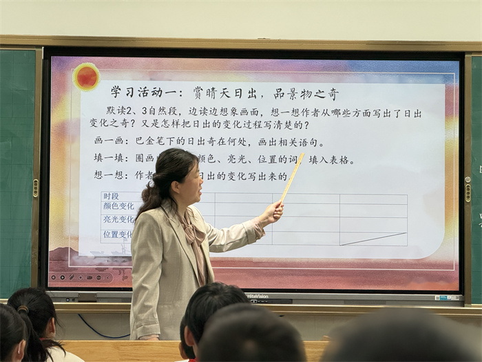 为精准把握课堂教学实施情况,调研组开展全覆盖式听课,累计观摩24节常态课。课堂上,教师努力践行新课标理念,将“语言运用、思维能力、审美创造、文化自信”四大核心素养培育贯穿全程。教学中,教师以真实情境为依托,驱动“我想学”;精心设计前置性任务,引领“我先学”;引导学生开展各项言语实践活动,促进“我会学”;学生化身“小先生”展示成果,呈现“我学会”,实现学习智慧的生成。