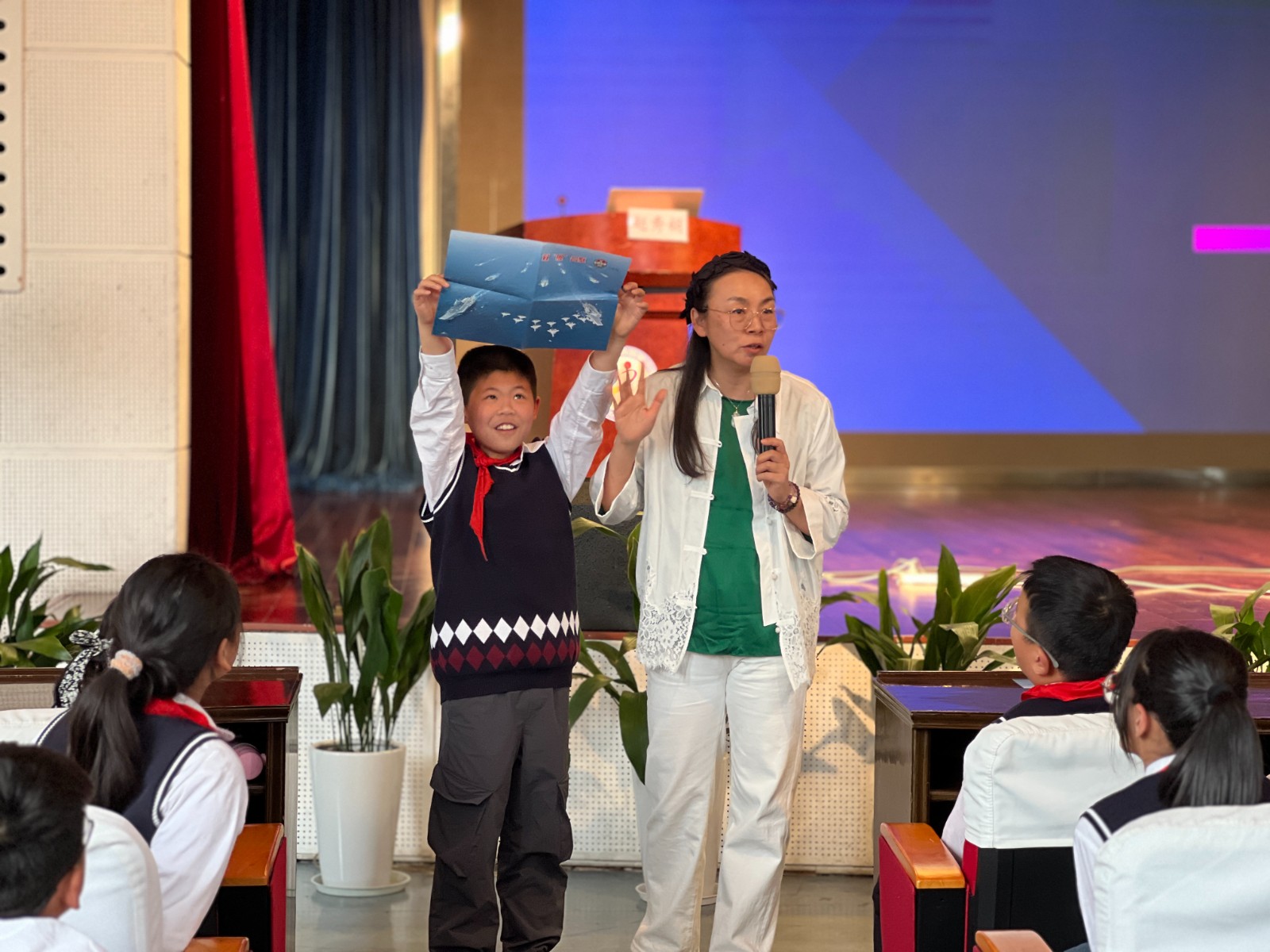 在互动环节中,少先队员们踊跃提问,从机器狼的技术原理到未来科技对生活的影响,展现出对军事科技的好奇与热情。赵教授逐一解答,并为提问学生赠送签名纪念,现场气氛活跃。活动尾声,她寄语学生:“科技创造未来,阅读让人生更智慧。愿你们以知识为翼,勇敢追逐科学梦想。”