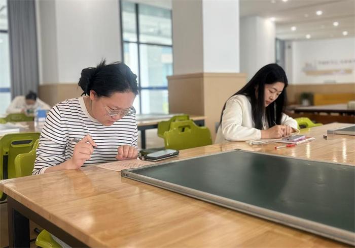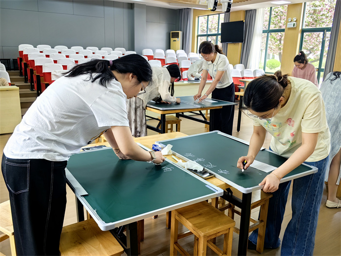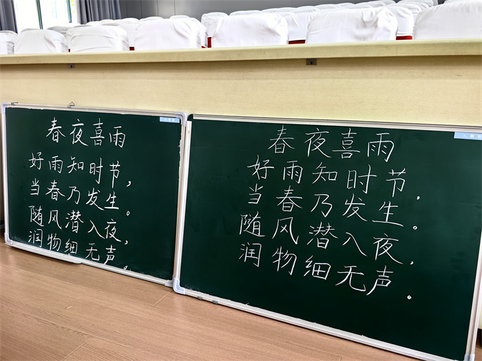 青年教师根据现场指定内容,在20分钟内完成钢笔字、粉笔字作品书写。选手们凝神静气,笔尖上流淌出或遒劲有力、或清秀隽永的楷书诗句。他们从起笔、行笔到收笔一气呵成,一撇一捺都体现着他们平日的努力和付出。一幅幅作品凝聚着老师们的心血和智慧,也展现着他们各自独特的书法风格。