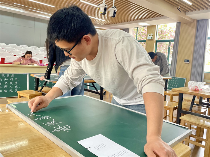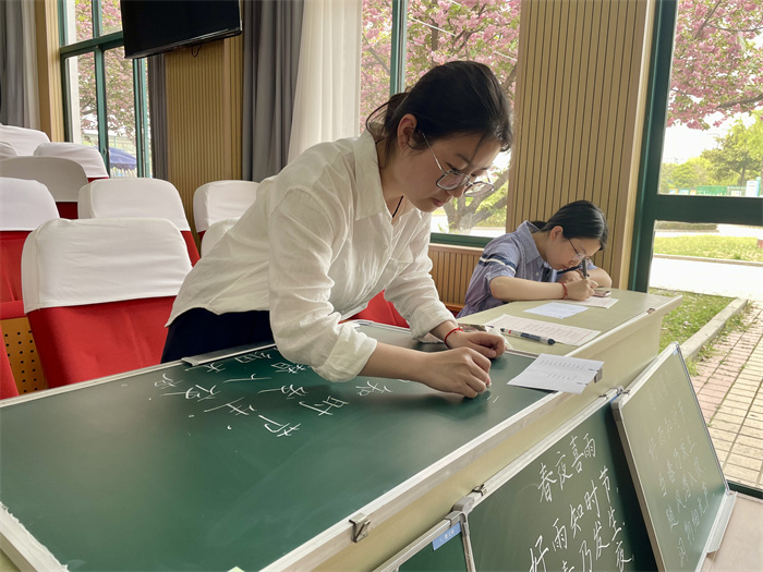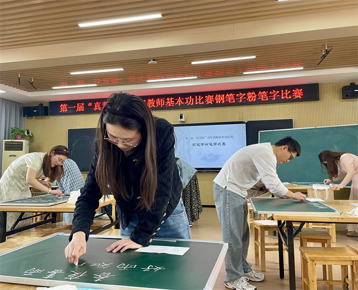 钢笔字与粉笔字书写比赛现场,选手在20分钟内完成指定内容书写。一支钢笔、一方黑板,横竖撇捺间尽显功力:有的字体刚劲挺拔,如板书设计般条理清晰;有的行笔流畅飘逸,于细节处透出文化底蕴。赛后,参赛教师纷纷表示:“数字化时代,手写板书仍是教师不可替代的基本功,它是知识的传递,更是师者匠心的沉淀。”