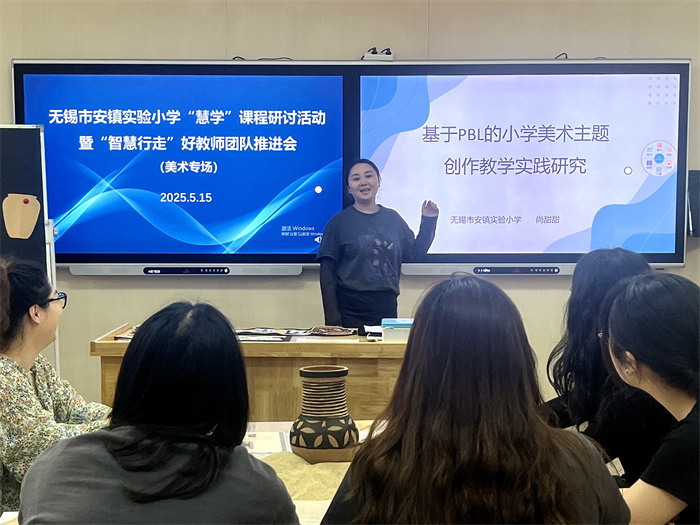 锡山区学科带头人尚甜甜老师和黄莉老师分别作《基于PBL(项目式学习)的小学美术主题创作教学实践研究》和《一张“纸”的故事》的讲座,两位老师通过生动的案例,深入浅出的讲解,展示了美术与生活深度融合的路径。