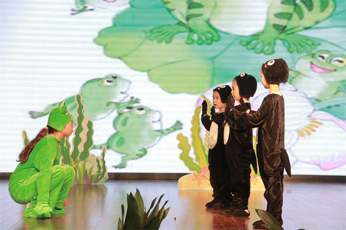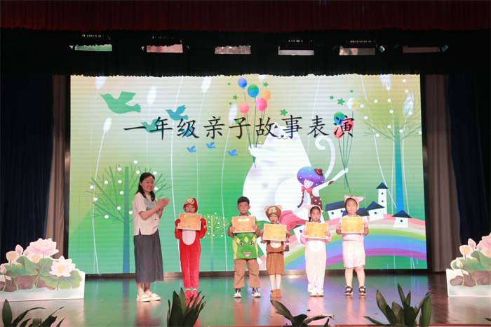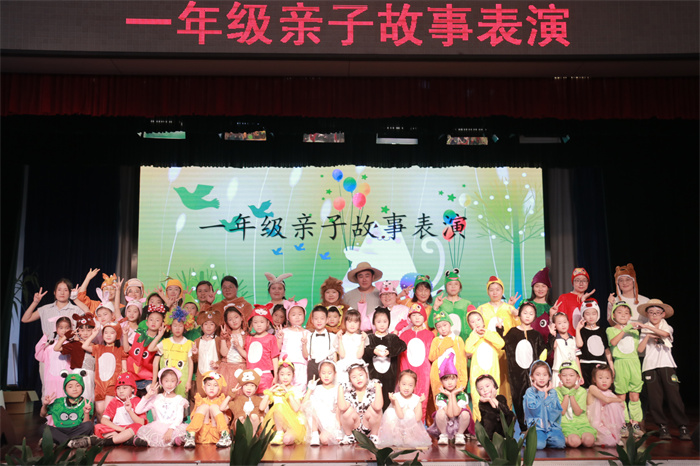 “童心筑梦,亲子共乐。”一年级开展了妙趣横生的亲子故事表演。《龟兔赛跑》传递坚持与谦逊的力量,《我的幸运一天》充满反转与趣味,《咕咚来了》带来了欢笑与思考……小朋友与家长默契演绎童话故事,欢笑与感动共绽舞台。