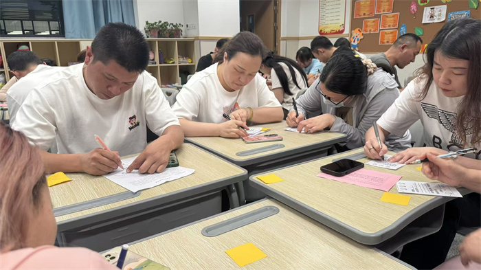 接着是“慢赏花开·点赞童心”环节。每个孩子都是独一无二的个体,身上闪耀着独特光芒。家长们拿起“发现光芒”点赞卡,认真写下孩子最打动自己的瞬间。有的家长记录孩子勇敢尝试新事物的瞬间,有的写下孩子暖心举动带来的感动,还有的分享孩子专注坚持完成任务的模样。这些文字不仅是成长的记录,更是对孩子的鼓励与肯定,让孩子感受到“被看见”的幸福,增强自信心。