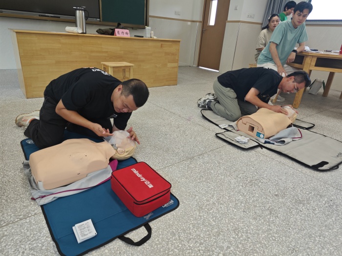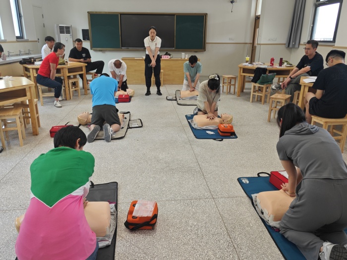 此次培训邀请了江苏省红十字会资深讲师团队及省级医疗机构急救专家授课。课程严格按照《红十字应急救护培训标准化手册》(2023年版)新大纲要求开展,内容丰富全面,涵盖红十字运动基本知识、救护概论、心肺复苏、创伤救护、常见急症及意外伤害处理等内容。培训采用“理论+演示+实操+考核”的多元模式:理论环节结合案例剖析急救要点;演示环节规范展示心肺复苏、气道梗阻处理等操作;实操阶段学员分组演练,讲师一对一指导纠错;考核环节通过模拟真实场景检验应急反应能力,以学员为中心,着力提升实操与教学能力。