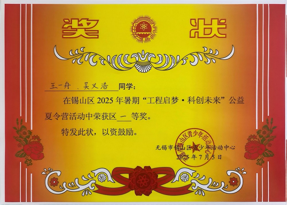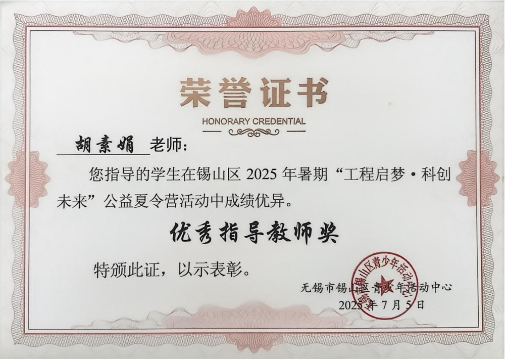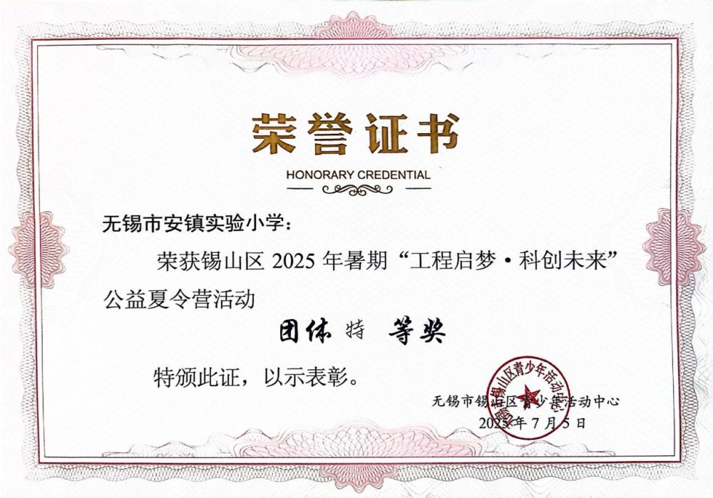 在锡山区 “工程启梦・科创未来” 公益夏令营中,安镇实验小学代表队一举斩获两项赛事一等奖及团体特等奖,荣耀归来!胡素娟、李梦媛老师荣获“优秀指导教师奖”。