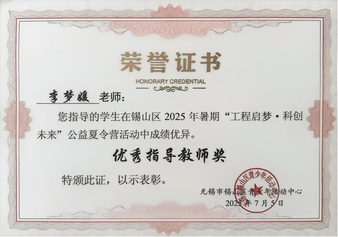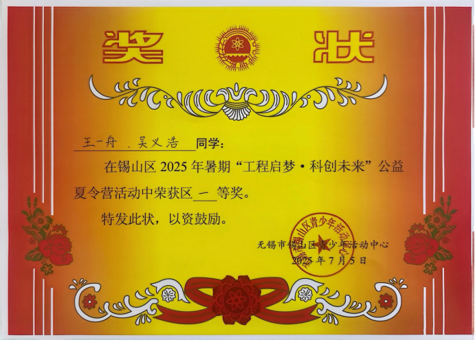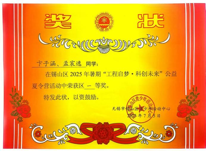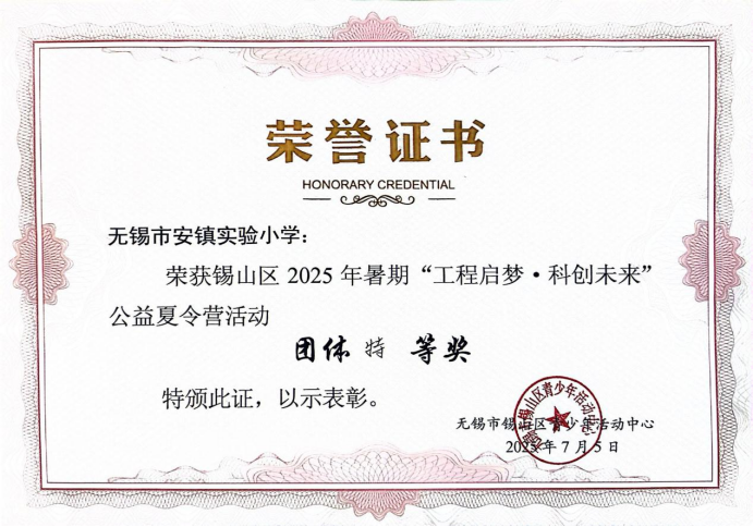 在锡山区 “工程启梦・科创未来” 公益夏令营中,安镇实验小学代表队一举斩获两项赛事一等奖及团体特等奖,荣耀归来!胡素娟、李梦媛老师荣获“优秀指导教师奖”。